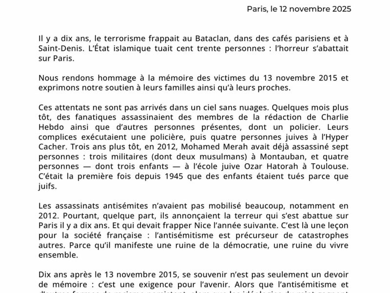 Nous rejetons fermement l’utilisation cynique par le gouvernement russe du terme génocide, de la mémoire de la Seconde Guerre mondiale et de la Shoah, ainsi que l’assimilation de l’État ukrainien au régime nazi pour justifier son agression unilatérale. Cette rhétorique est erronée sur le plan des faits, moralement répugnante et profondément offensante pour la mémoire des millions de victimes du nazisme et de ceux qui l’ont courageusement combattu, notamment les soldats russes et ukrainiens de l’Armée rouge.